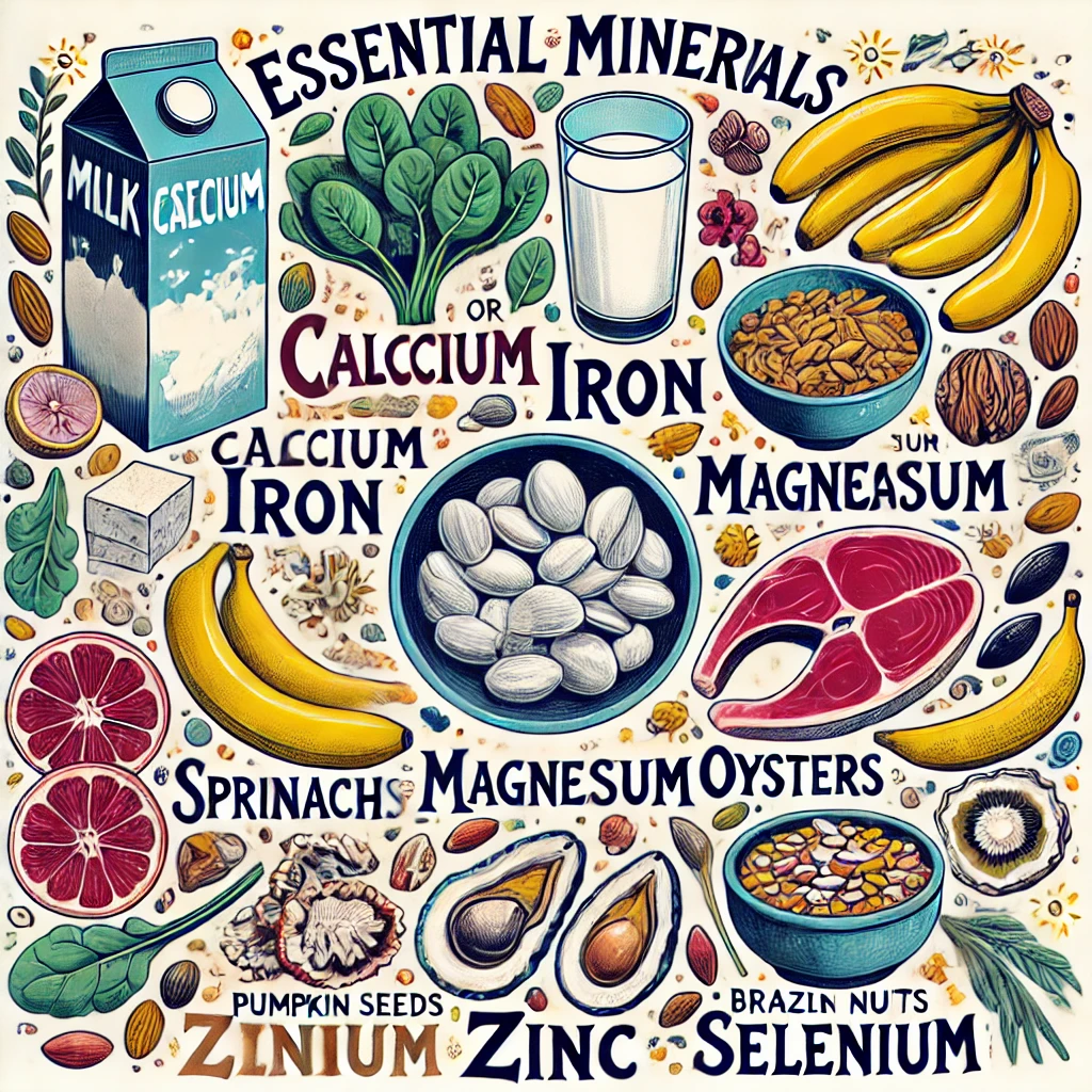 미네랄은 몸의 구조를 튼튼히 하고, 신경과 근육 기능을 조율하는 데 꼭 필요해요. 예를 들어, 철분이 부족하면 빈혈이 생길 수 있고, 마그네슘이 부족하면 근육 경련이 일어날 수 있어요. 부족하면 몸의 기계가 삐걱거릴 수 있어요!